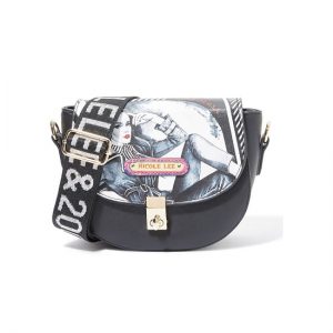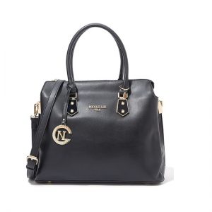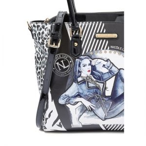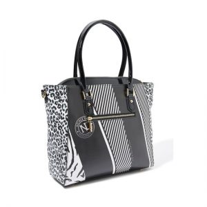 Exterior Features: Made of vegan leather. NL exclusive print design. Structured chain top handles. Detachable shoulder strap. Gold- tone hardware. Snap and metal zipper closure. Structured silhouette. NL nameplate at front.